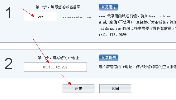第八步:輸入www和IP后,1小時左右解析即將生效