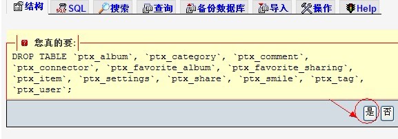 然后會顯示出來是否確認,如果您點擊是,將清空萬空間MYSQL的數(shù)據(jù)庫