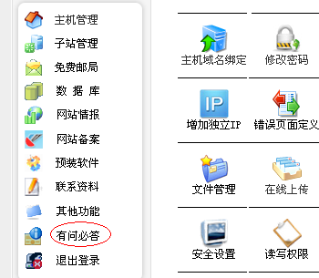 2.進入控制面板后,左邊有一個有問必答,提交問題即可