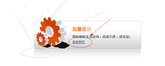 首先第一步,輸入自己的域名,如果出現如圖,證明你的空間可能超流量,或者程序有問題,或者被黑客惡意修改了。