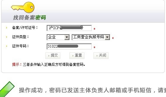 等待備案系統(tǒng)發(fā)送備案密碼到您的手機和郵箱上,一般幾分鐘內(nèi)可以收到