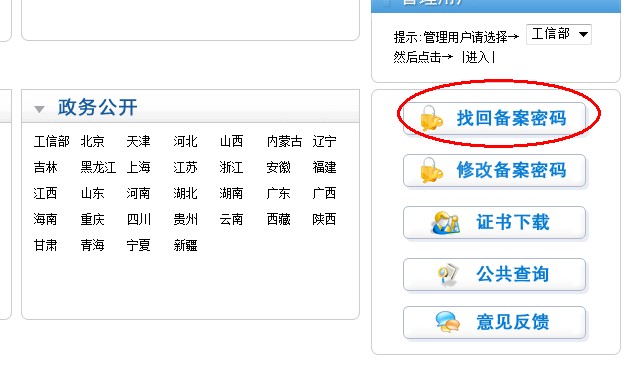 方法1:通過工業(yè)和信息化部網(wǎng)站自主找回。在工信部網(wǎng)站右下角有一個“找回備案密碼”連接,點擊。