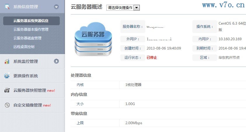 可以直接在阿里自助管理,進行各種操作,比如重啟,初使化,更換操作系統等