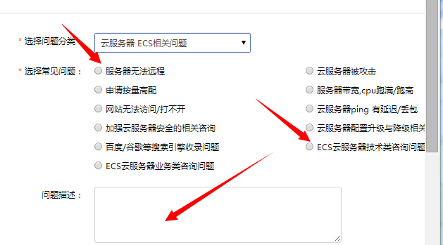 第二步,選擇ECS相關問題,根據需要選擇具體的服務,如果不能,直接選擇ECS技術問題,如圖