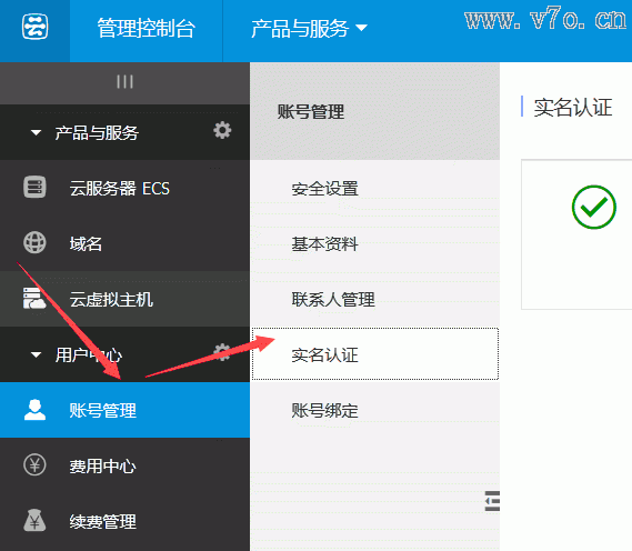 第一步,登錄阿里云官網(wǎng),進(jìn)入用戶中心-帳號(hào)管理-實(shí)名認(rèn)證,如圖