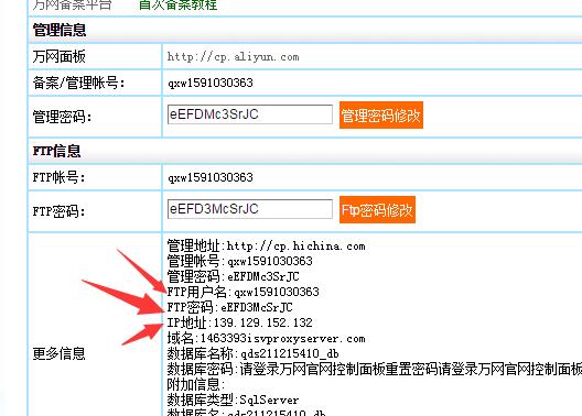 5,登錄我們網站管理中心-主機產品-控制面板,找到這里的FTP帳號和密碼,IP地址,如圖
