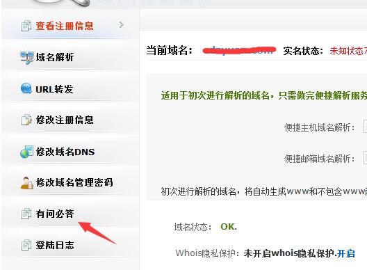 有的時候域名無法解析,或者解析無法生效,需要提交有問必答讓技術處理,流程是:
