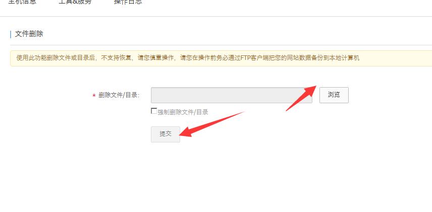 登錄萬網主機控制面板-文件管理-文件刪除-查找要刪除的文件或者目錄,點擊確認即可