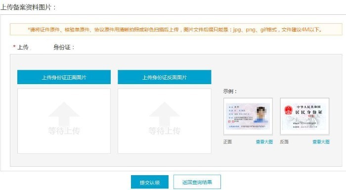 3、上傳相關備案證件資料,提交認領申請備案