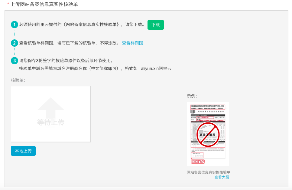 4,填寫網(wǎng)站信息,單擊 下一步,上傳備案資料。