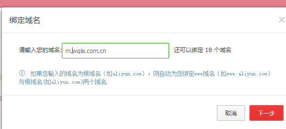 2,還要進入萬網(wǎng)主機控制面板,綁定一下域名m.wqiis.com.cn