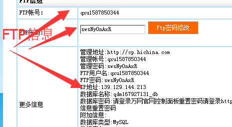 這里能查到FTP的信息,如果密碼不對可以重置