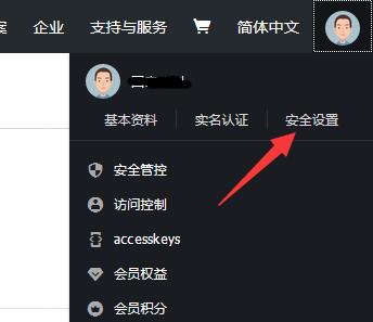 通過我們維啟購買阿里云服務器后可以找我們申請免費配置環境,第1步先找到會員ID復制發給我們客服,具體流程發我一下,登錄阿里云后右上角,查看小圖標會出來安全設置,如圖