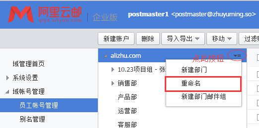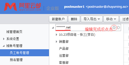 萬網企業郵箱中以域名命名的部門名稱就需要通過手動的方式對部門名稱修改。
