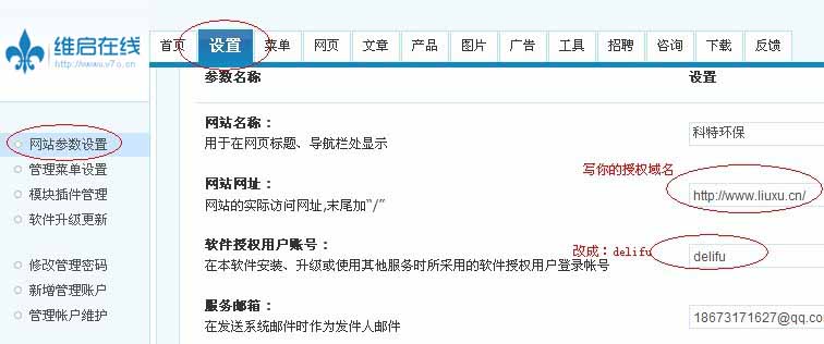 在您的域名后面輸入/admin.php,登錄網(wǎng)站管理后臺(tái),點(diǎn)擊設(shè)置-點(diǎn)擊網(wǎng)站參數(shù)設(shè)置,請(qǐng)把網(wǎng)站網(wǎng)址改成您實(shí)際授權(quán)的域名,軟件授權(quán)用戶帳戶改成:delifu提交保存后,刷新或者退出后即可授權(quán)成功