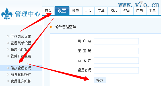[功能說明]  輸入管理用戶名、原密碼、新密碼、確認新密碼提交完成修改