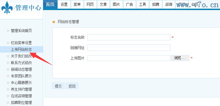 登錄網站后臺-點擊首頁-上傳網站標志如圖
