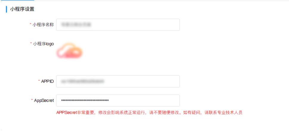 在準(zhǔn)備工作篇中,已有小程序申請(qǐng)步驟方法,此處需填寫小程序名稱、logo、對(duì)應(yīng)申請(qǐng)小程序的APPID等信息,填寫完畢后確認(rèn)保存即可(此處有度科技工作人員會(huì)協(xié)助填寫配置)